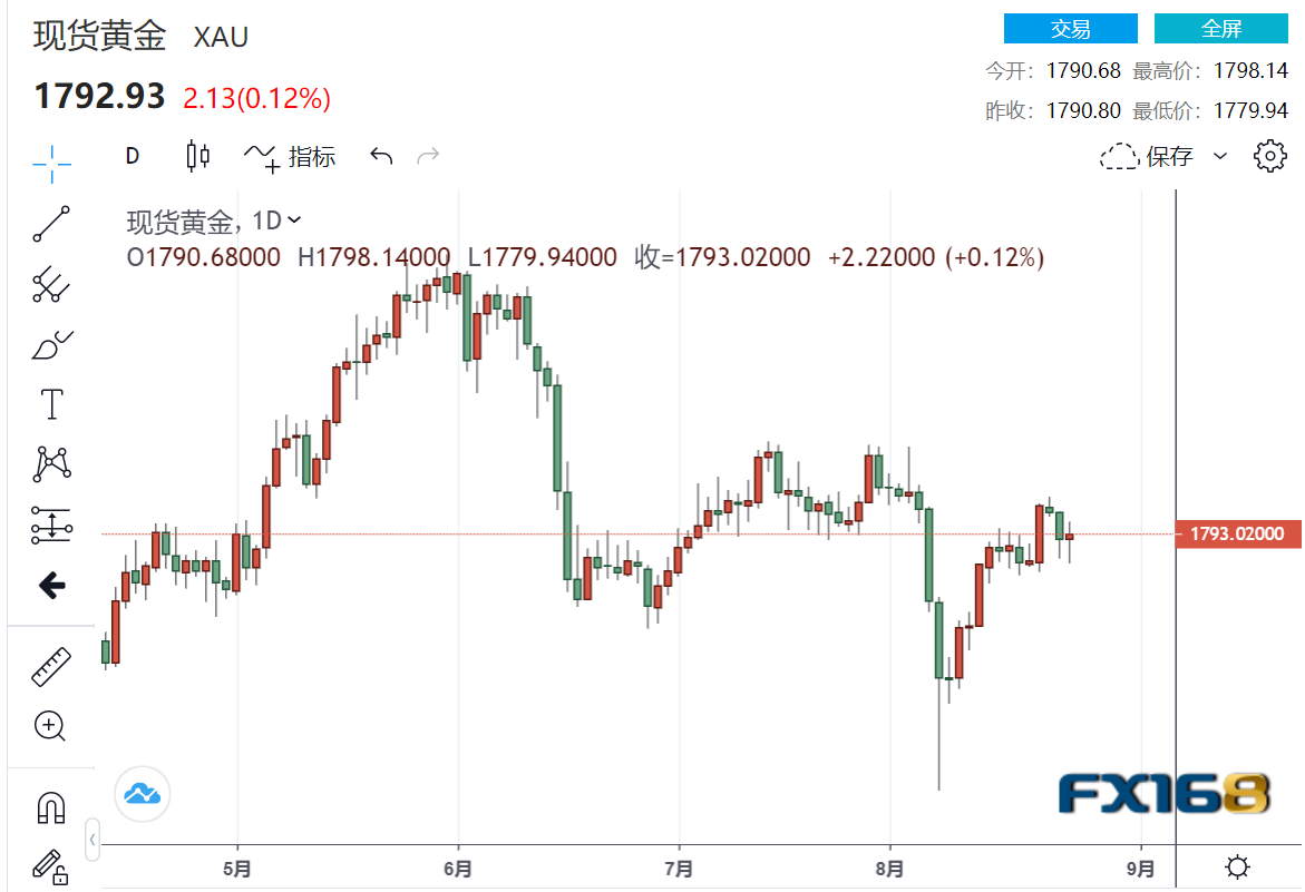 (现货黄金日线图,来源:FX168)