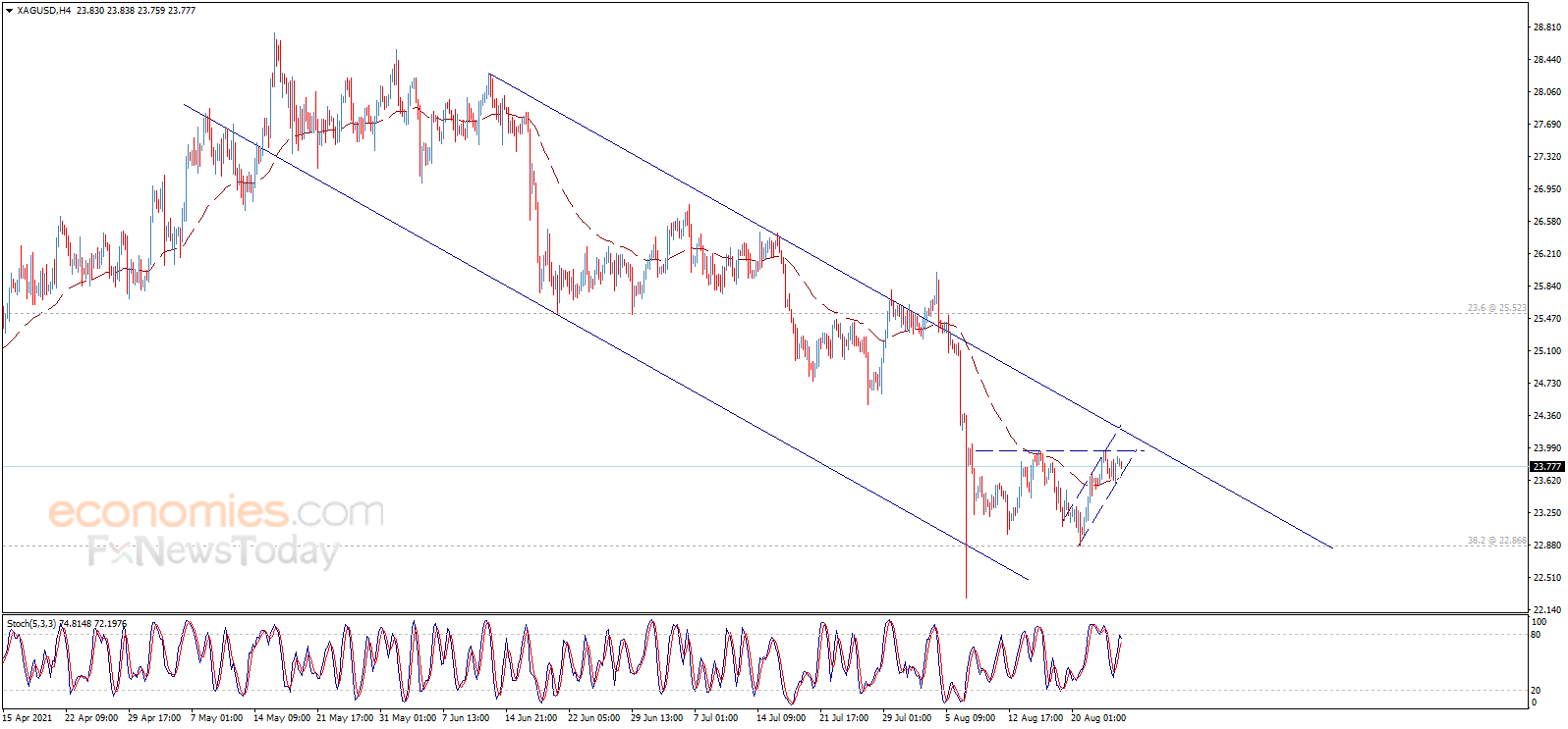 FX168财经报社(香港)讯 周四(8月26日)欧市早盘,现货白银维持跌势,目前交投23.65美元/盎司水平附近。知名财经资讯网站Economies.com周四最新撰文,对日内白银走势进行前瞻分析。
