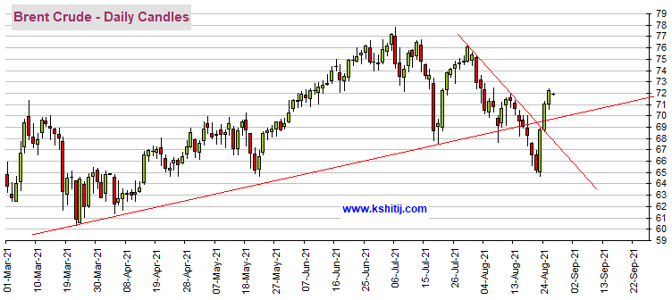 原油方面,Kshitij咨询服务团队表示,布伦特原油期货可能向上测试72.50美元/桶,然后自这一水平回落。假如没有从72.50美元/桶下跌,这可能令布油测试75美元/桶,然后再急剧下滑。我们将首先关注72.50美元/桶附近的价格走势,预计在接下来的1-2个交易日内会构成阻力。