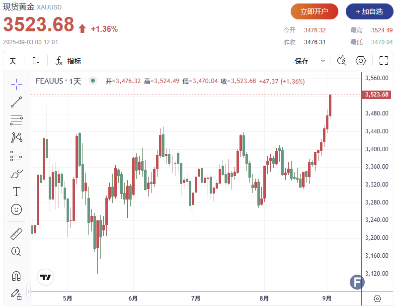 FX168财经报社(北美)讯 周二(9月2日),黄金价格一度突破每盎司3520美元,受美国降息预期、对美联储独立性的担忧以及健康的投资者和央行需求引发的黄金最新上涨,可能会在未来几周推动金价创下新高。