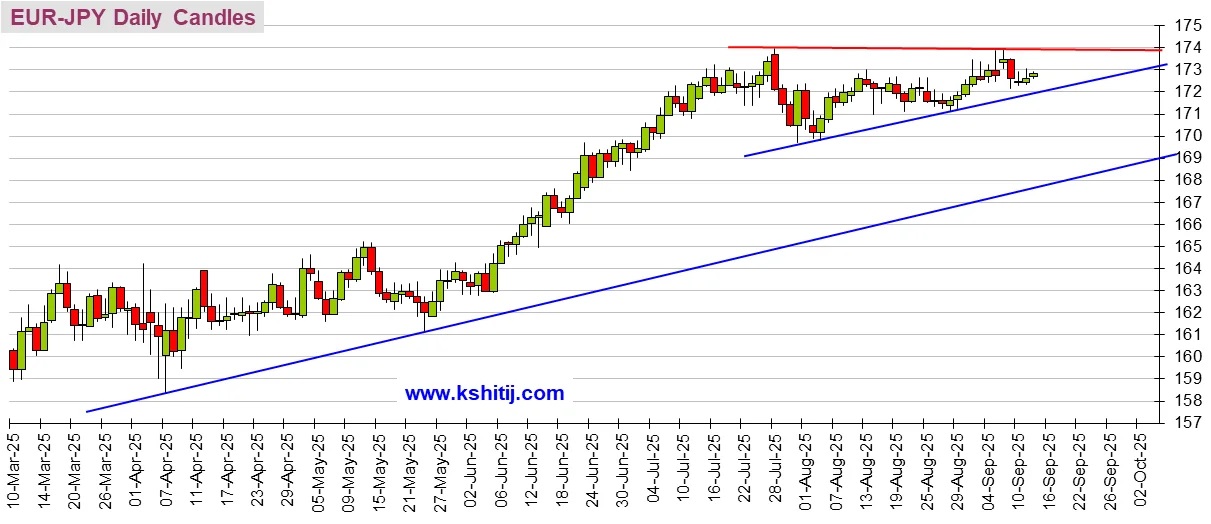 欧元/日元缓慢上扬。172-174的波动区间暂时保持完好。