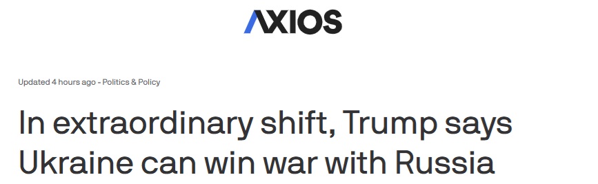 Axios称,特朗普在纽约会见乌克兰总统泽连斯基(Volodymyr Zelensky)后的言论表明,他对这场战争的立场发生了180度的大转变。