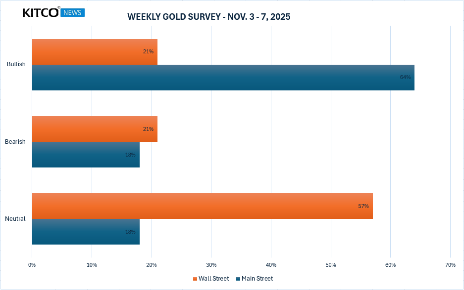 普通投资者方面,282名受访者中,64%看涨黄金,18%看跌,另有18%认为价格将维持区间波动。