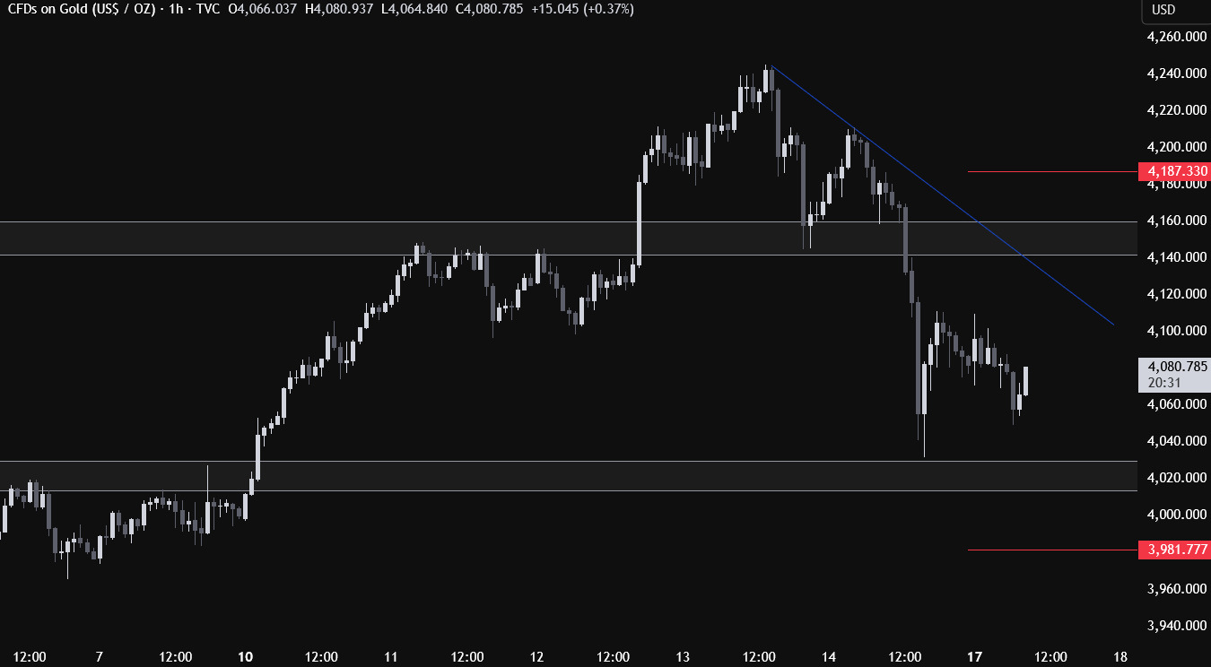 在4小时图表上,可以看到金价在4020附近有一个强有力的支撑区域。如果价格达到这一水平,可以预期买家将在支撑位以下的明确风险下进场,为反弹至历史新高做准备。另一方面,卖方将寻找一个突破,以增加对主要趋势线的看跌押注。