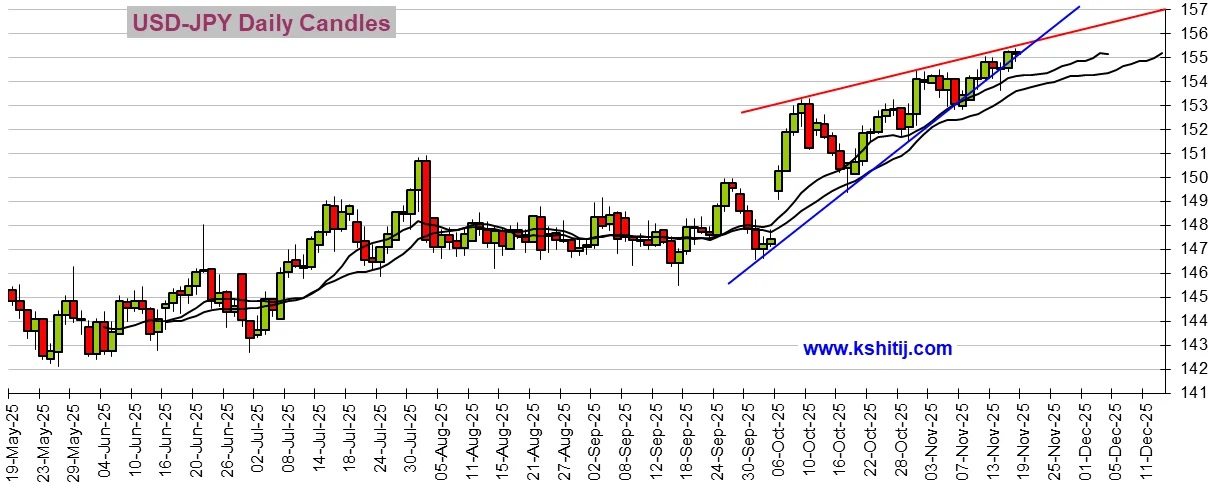 美元/日元如预期般上涨,若能持续突破156,短期内或可升至158-160区间。总体而言,只要保持在154上方,那么观点仍为看涨。