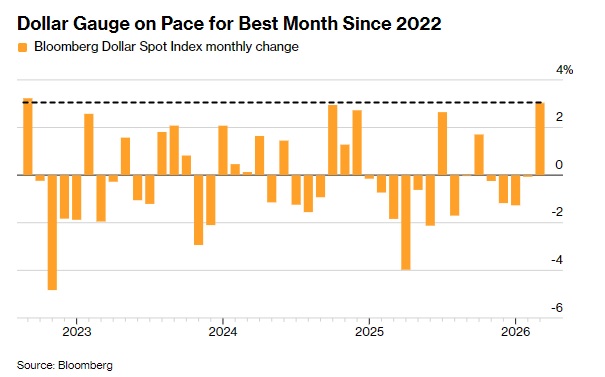 伊朗战争引爆避险资金流!美元飙升并有望录得自2022年以来的最佳月份