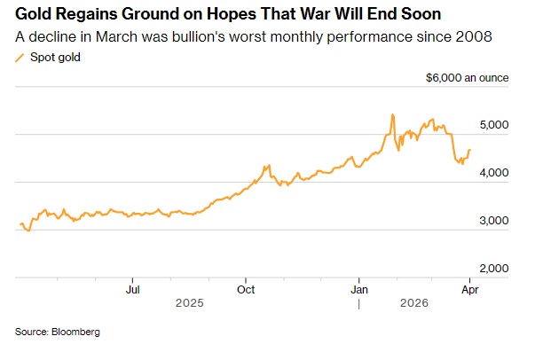 尽管过去几天出现反弹,黄金价格在3月份累计下跌近12%,创下自2008年10月以来最差的单月表现。已进入第五周的中东战争扰乱了全球市场,并抑制能源及其他商品的供应,引发对通胀飙升的担忧,这种担忧一度盖过黄金作为传统避险资产的吸引力。
