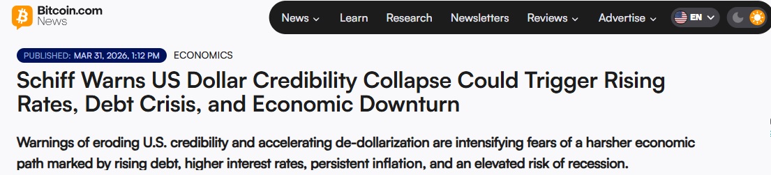 除上述言论外,希夫在近期评论中多次进一步阐述美国信誉下降和去美元化加速的主题。他将美元可能失去储备货币地位形容为对美国经济体系的决定性打击,并认为对美元的依赖是国家金融实力的基础。