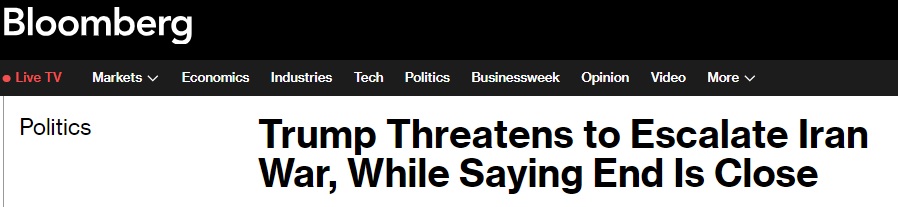FX168财经报社(亚太)讯 美国彭博社周四(4月2日)最新报道称,美国总统特朗普(Donald Trump)表示,对伊朗的战争“已非常接近完成”,但他同时暗示,短期内打击行动可能会升级。