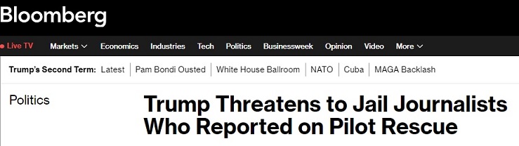 FX168财经报社(亚太)讯 美国彭博社周一(4月6日)报道称,美国总统特朗普(Donald Trump)威胁称,将把那些公布美军一次大胆营救行动细节的记者投入监狱。在这次行动中,两名飞行员的飞机在伊朗上空被击落,而相关报道被他指责为危及任务安全。