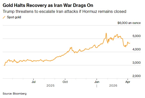 24K99讯 周二(4月7日)亚市盘中,因交易员权衡美国总统特朗普(Donald Trump)最新威胁——摧毁伊朗基础设施——以及长期战争对经济增长的影响,现货黄金价格走低,延续此前两日的跌势。