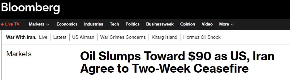 FX168财经报社(亚太)讯 在美国与伊朗达成一项为期两周的停火协议后,油价暴跌向90美元/桶。该协议预计将暂停美以军事行动,作为交换,德黑兰将重新开放霍尔木兹海峡。这一进展显著缓解了市场对中东原油供应中断的担忧,风险溢价迅速回落。