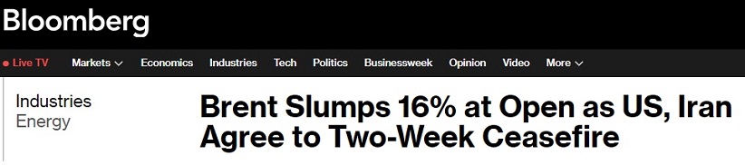 特朗普停火声明引发原油“瀑布式”下跌!伊朗同意开放海峡 布油价格崩跌16%
