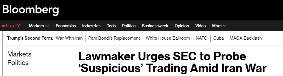 FX168财经报社(亚太)讯 美国彭博社周三(4月8日)报道称,一位美国议员周三表示,华尔街最高监管机构应该调查特朗普(Donald Trump)总统上个月推迟对伊朗的军事打击之前不久石油和股票期货市场的异常交易活动。