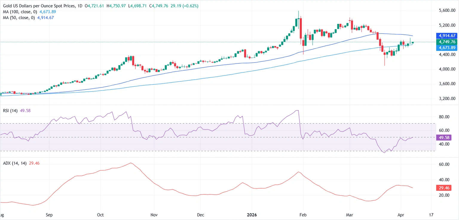 FXStreet指出,从日线图来看,XAU/USD目前在关键均线之间来回波动。金价守在100日简单移动平均线(SMA)4673.84美元上方,但仍运行在50日SMA 4914.57美元下方,这意味着在近期回调之后,短线基调整体仍偏中性。